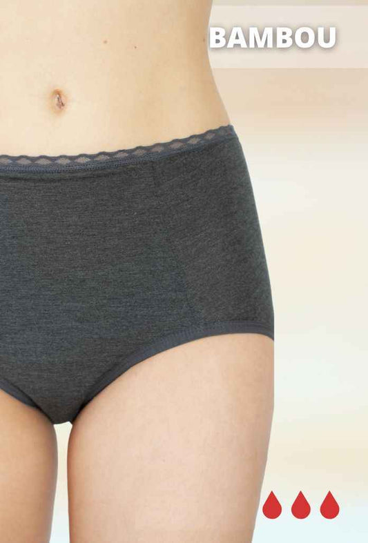 Culotte Menstruelle Haute BAMBOU - Gris chiné