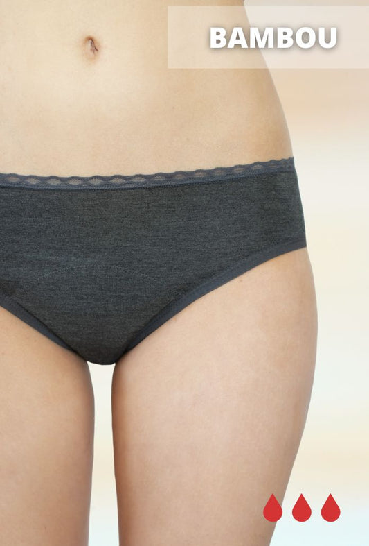 Culotte Menstruelle Taille Basse BAMBOU - Gris chiné