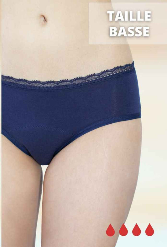 Culotte Menstruelle Taille Basse COTON - Marine