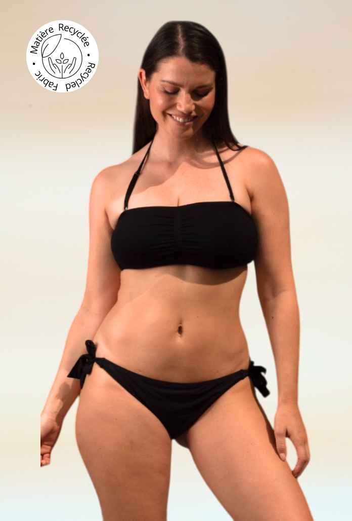 Laissez-vous séduire par notre bikini menstruel ultra-discret, et parfaitement adapté à une large gamme de taille grâce à ses nœuds ajustables sur le côté. Nous offrons une gamme de taille du 34 au 44 !